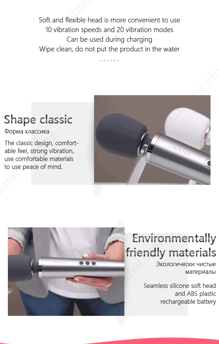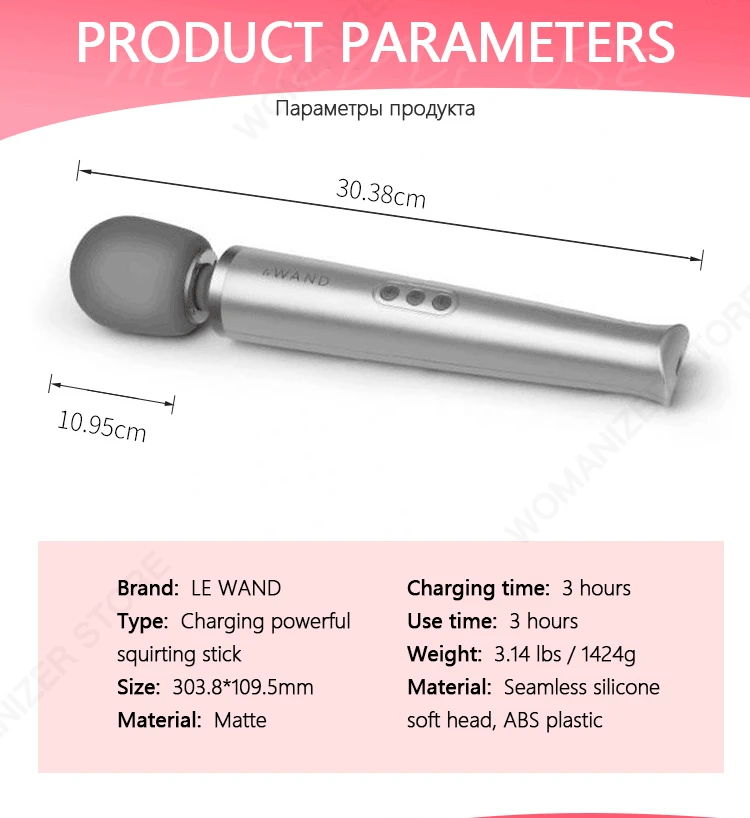 Longueur de l'article: 13" Largeur de l'article: 2.25 "(tête) Rechargeable Matériau: Silicone (tête)/TPE (couvercle) Modèle du fabricant: LW-001