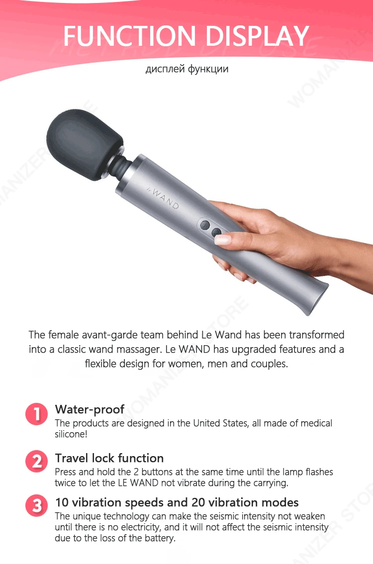 Masseur sans fil Ultra-puissant: fournit des Vibrations puissantes, profondes et pénétrantes La baguette luxueuse a 10 vitesses de Vibration distinctives et grondantes et 20 modèles de vibrations Tête en Silicone pour le corps et cou Flexible Verrouillage de voyage et commandes faciles à utiliser Rechargeable: 3 heures de Charge = 3 heures d'utilisation Ensemble complet: comprend une housse de Texture jetable multi-usage, un étui de voyage pratique et un emballage cadeau luxueux Garantie d'un an du fabricant