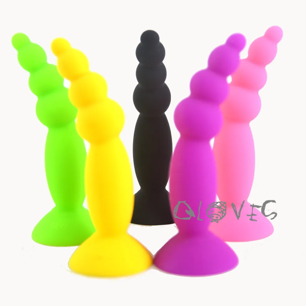 3pcs/lot fluorescence colour anal plug with sucker silicone butt plug beginners anal sex toys beads stopper adult sex products